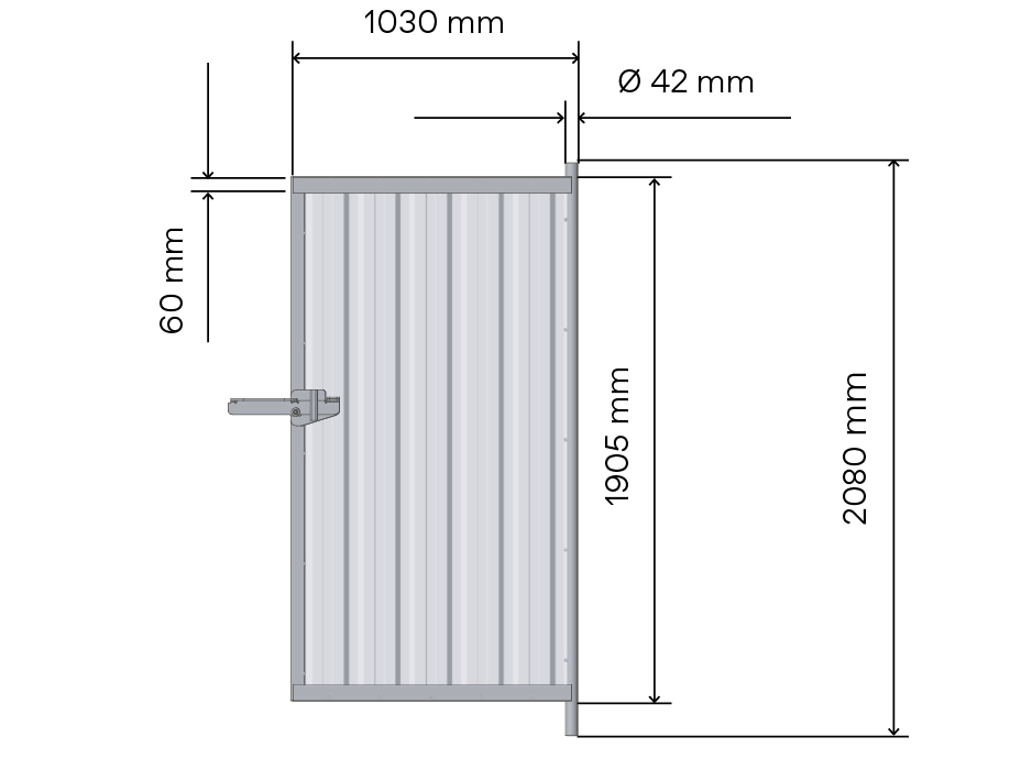 Rozmery: 1030 × 1905 mm Rám: oceľové rúry a profily 40 x 2 / 40 – 60 mm Výplň: trapézový plech T18 Hmotnosť: 20,2 kg